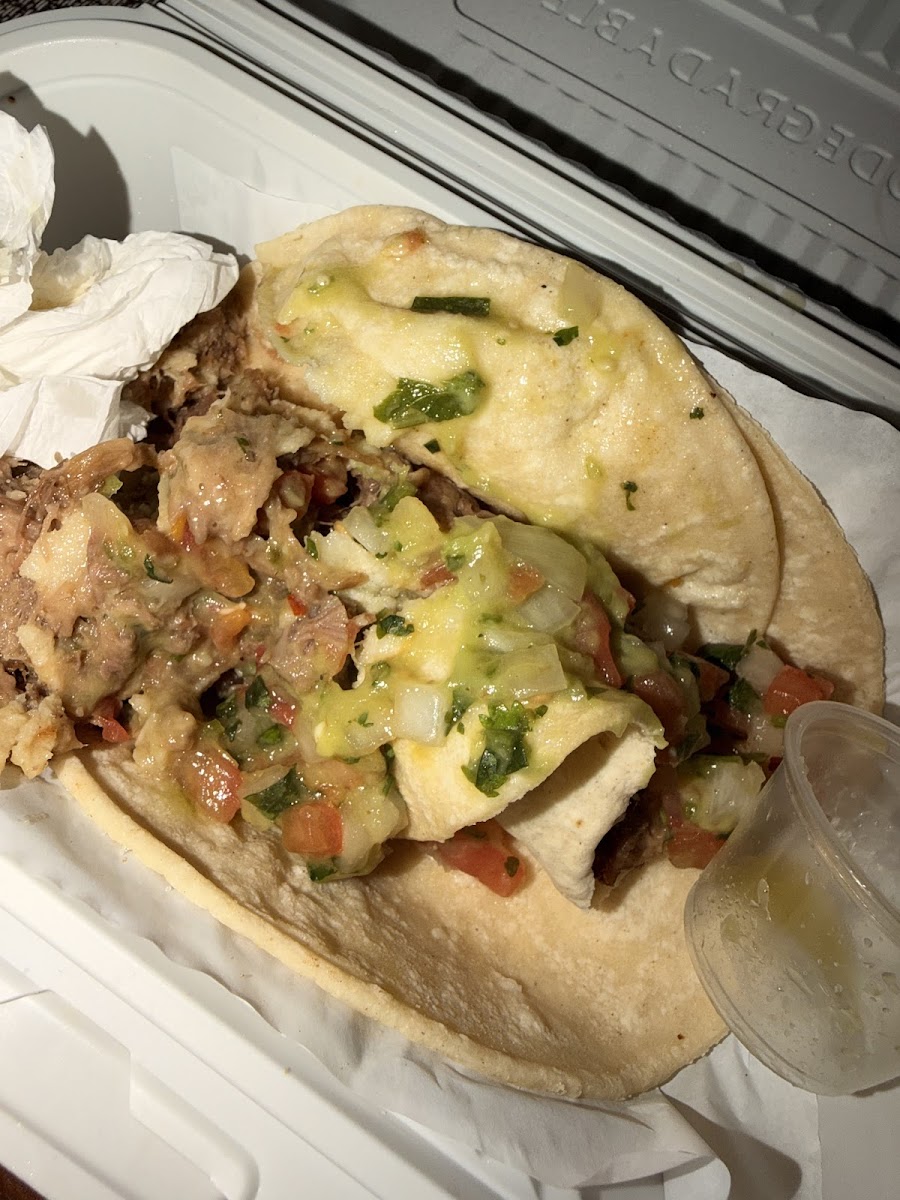 These people are doing the lords work Chile Relleno 10/10. Lots of sauces, guac, sour cream, rice and beans. Even gave me a few hot tortillas with it. Veggie Burrito 10/10. Stuffed to the brim with an array of delicious ingredients. Bean Tostada. 9/10 Crispy and flavourful. Horchata was more so 6/10, personally a bit too sweet for my taste but wonderful otherwise. I was asked if I wanted hot or mild and she said I could have both and I got 2 of each flavour! Very nice people and delicious fresh food. Not sure what people are talking about with it being cold. You get an insane amount of delicious food for half the price if you were to go anywhere else.